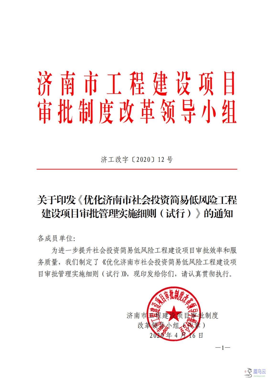关于印发《优化济南市社会投资简易低风险工程建设项目审批管理实施细则(试行)》的通知.pdf